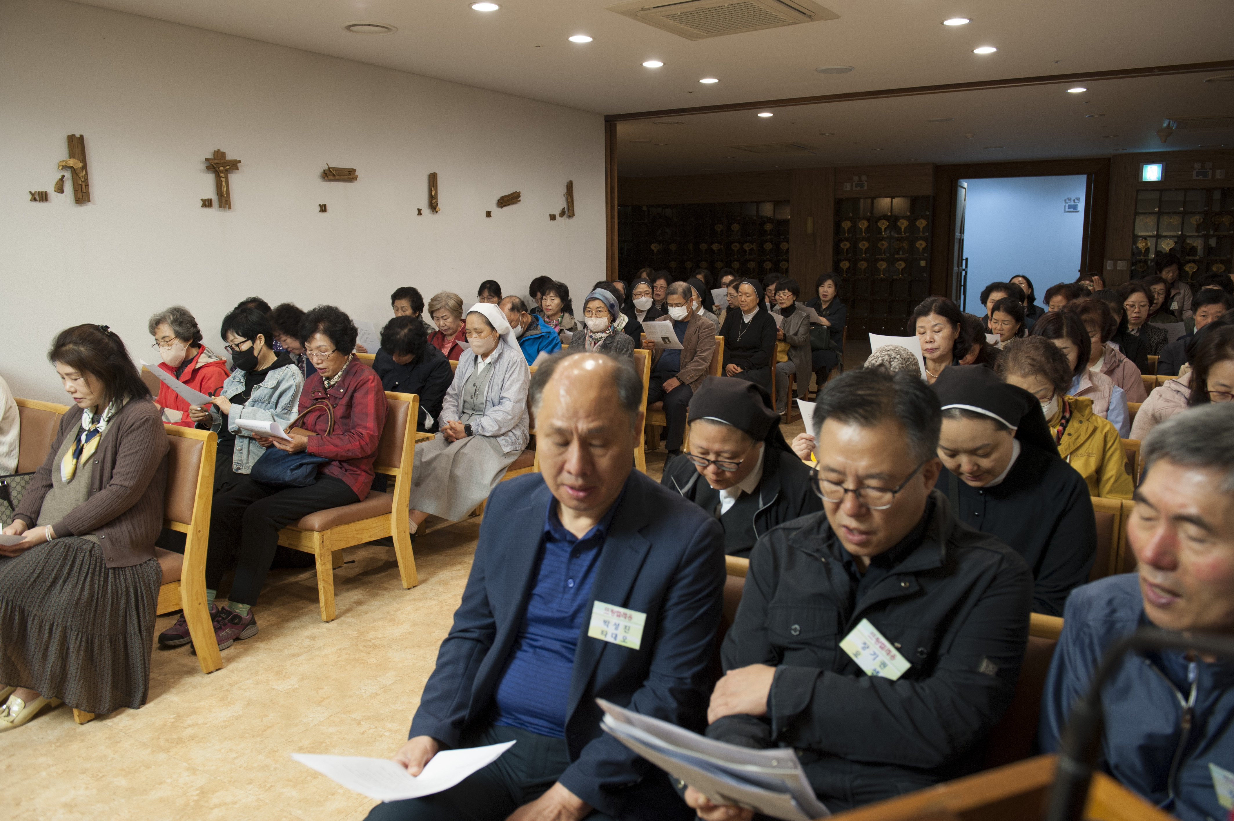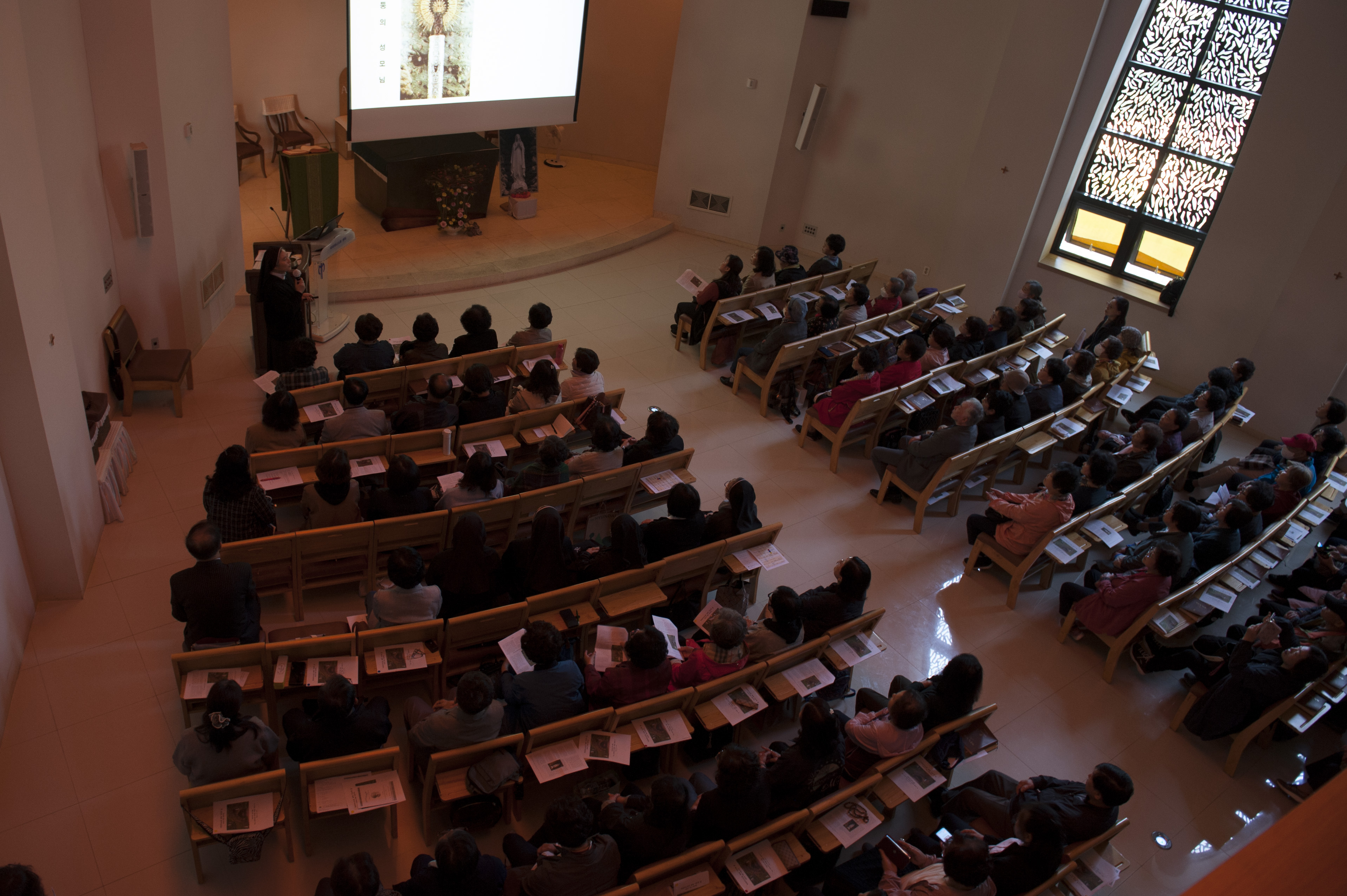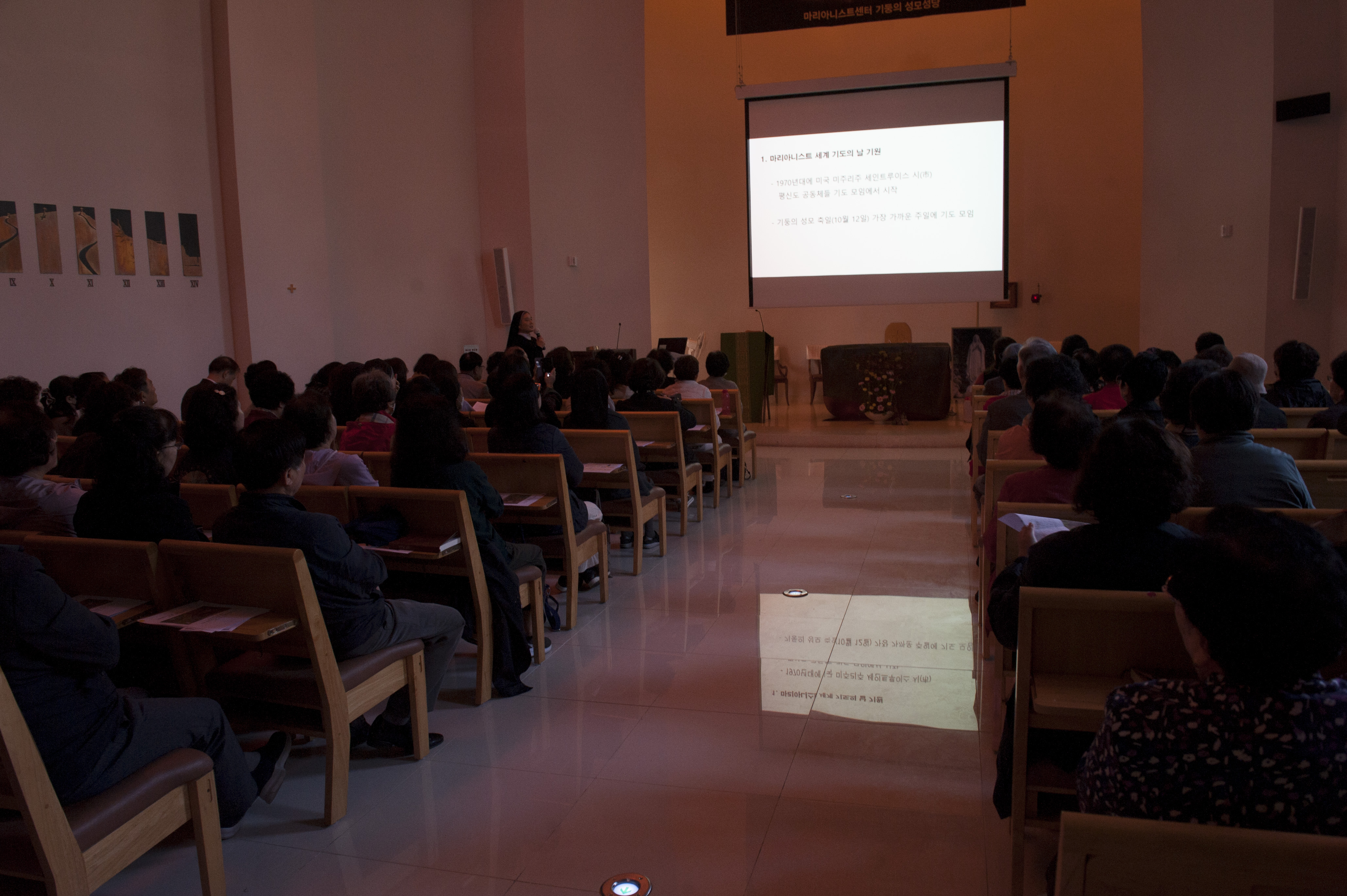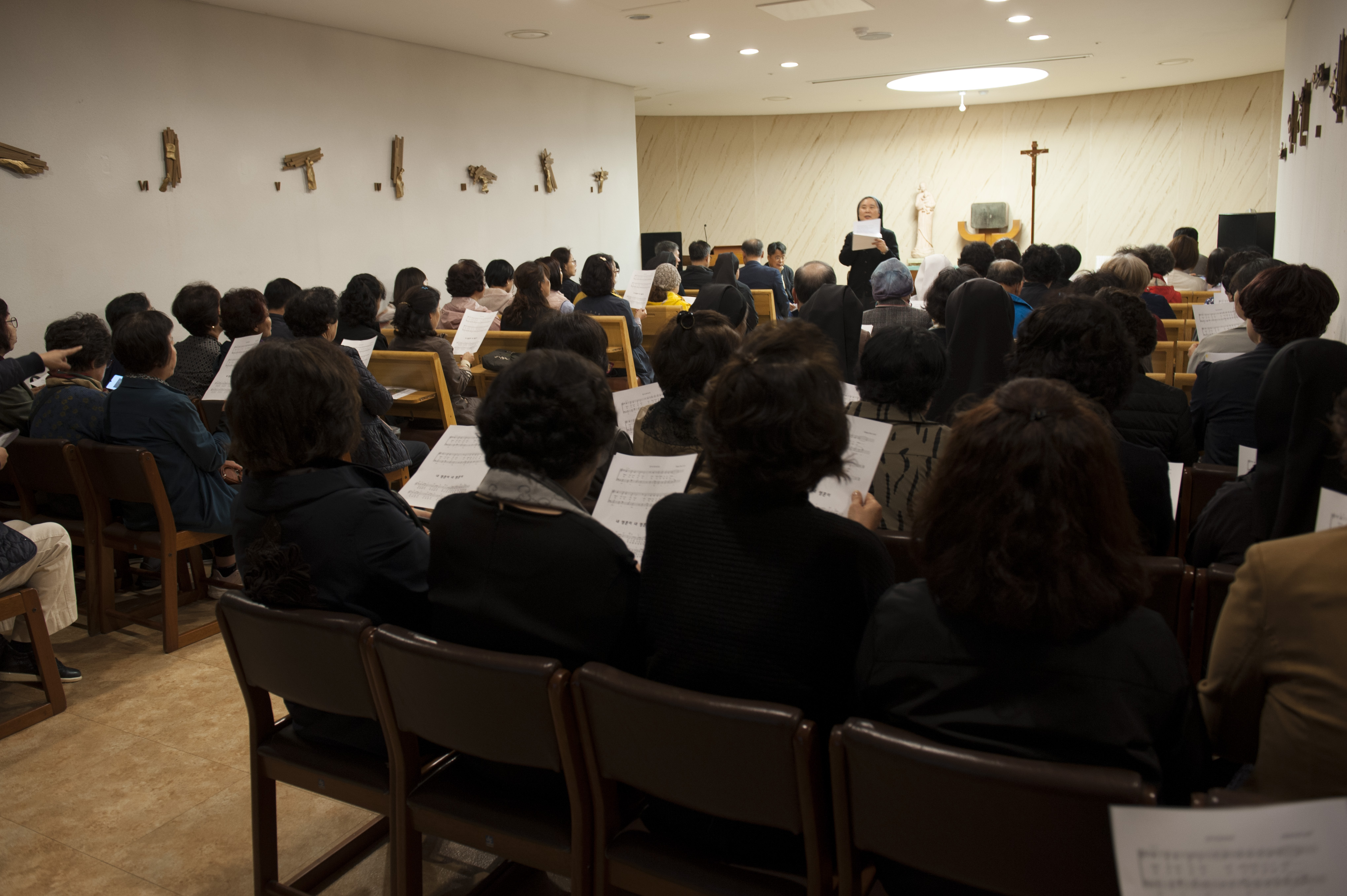 인천의 산곡동성당의 신자분들이 80여분 오셔서 아직 시작 시간이 되지 않았습니다만 성당이 찼습니다.